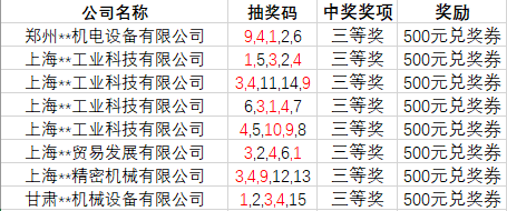本次活動(dòng)中獎(jiǎng)情況如下:
